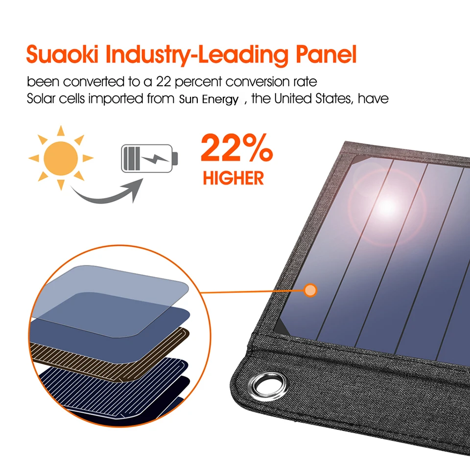Product Name: Suaoki Солнечный свет мощность 14 Вт солнечная батарея зарядное устройство 5 В 2.1A USB выход устройства Портативные солнечные панели для смартфон...